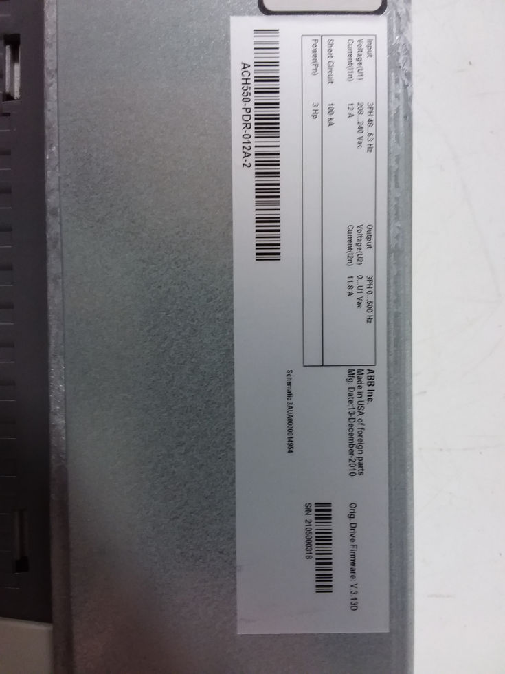 ABB VFD Drive ACH550-PDR-012A-2 3Hp 3Ph 208v 240v
