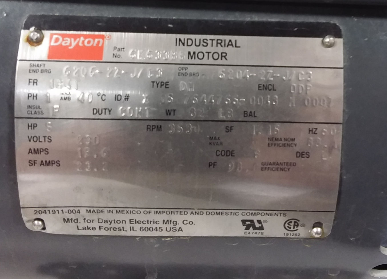 Daton Hp-5 Rpm-3530 Frame 164T Volts 230 Ph-1 6K633