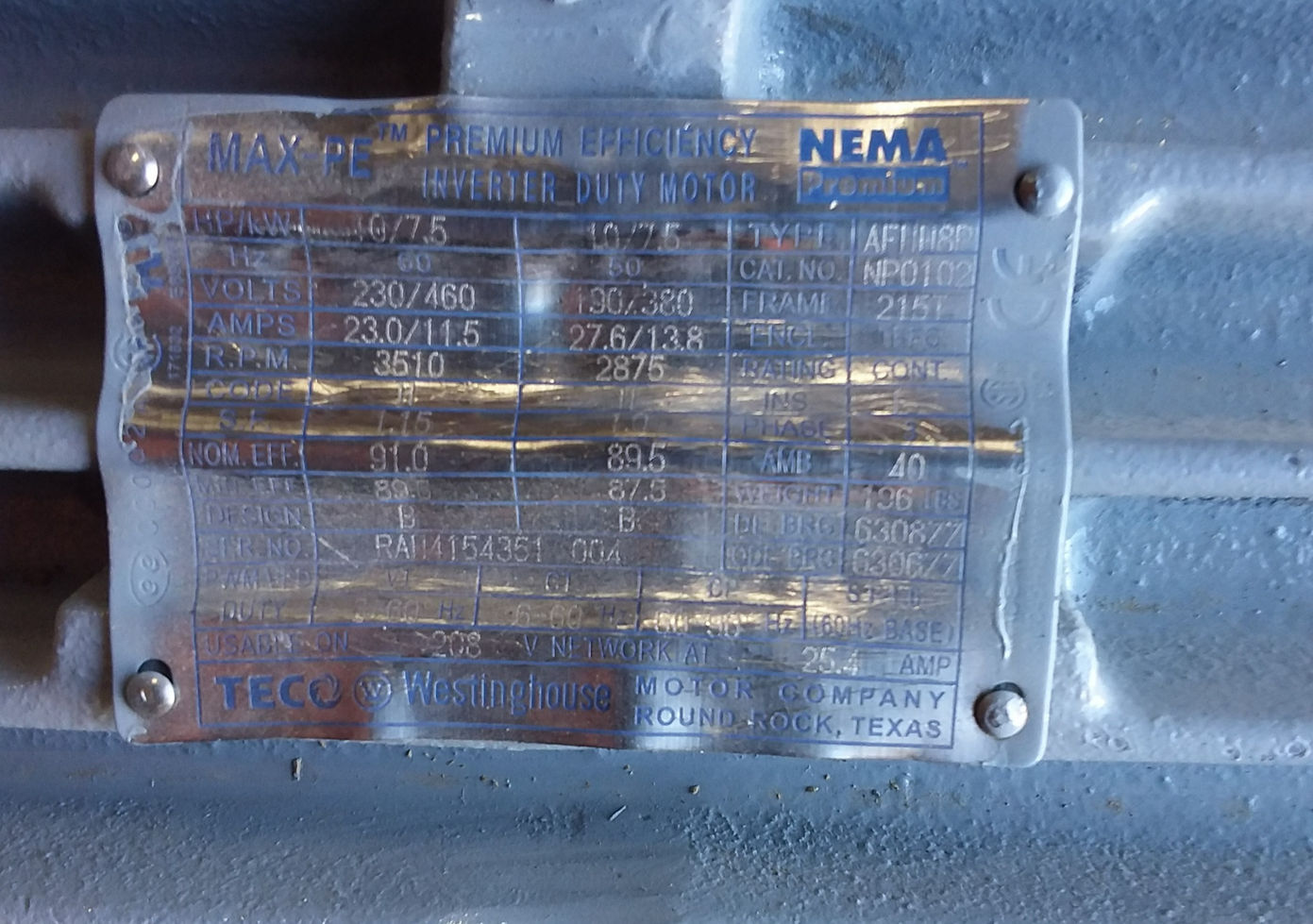 Teco Motor Hp-10 Rpm-3510 Volts-230/460 Ph-3 Frame 215T