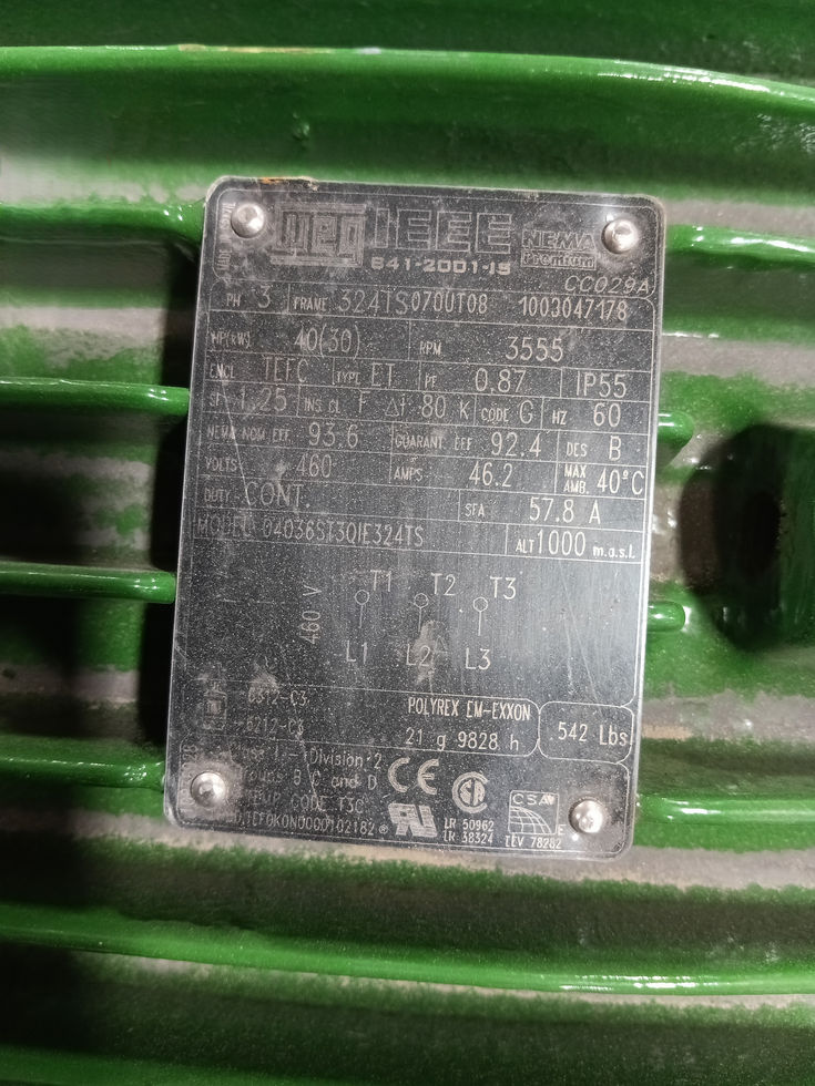 Weg Motor HP-40 RPM-3555 Frame 324T Volts 460 PH-3